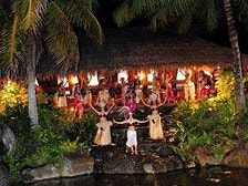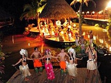 ビレッジツアーの後は、水上ステージで繰り広げられる迫力満点のアイランドナイト「ウラ・ポー」(踊りの宴)が開催されます。クック諸島の郷土料理ウム料理やイカマタなどを含むバイキング料理を食べながら、迫力あるショーを楽しみましょう。