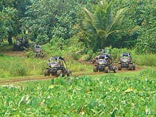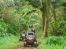 パワフルな4輪バギーに乗り、ラロトンガ島を大自然を巡るツアーです。カップルで1台のバギーに乗ることも可能です。